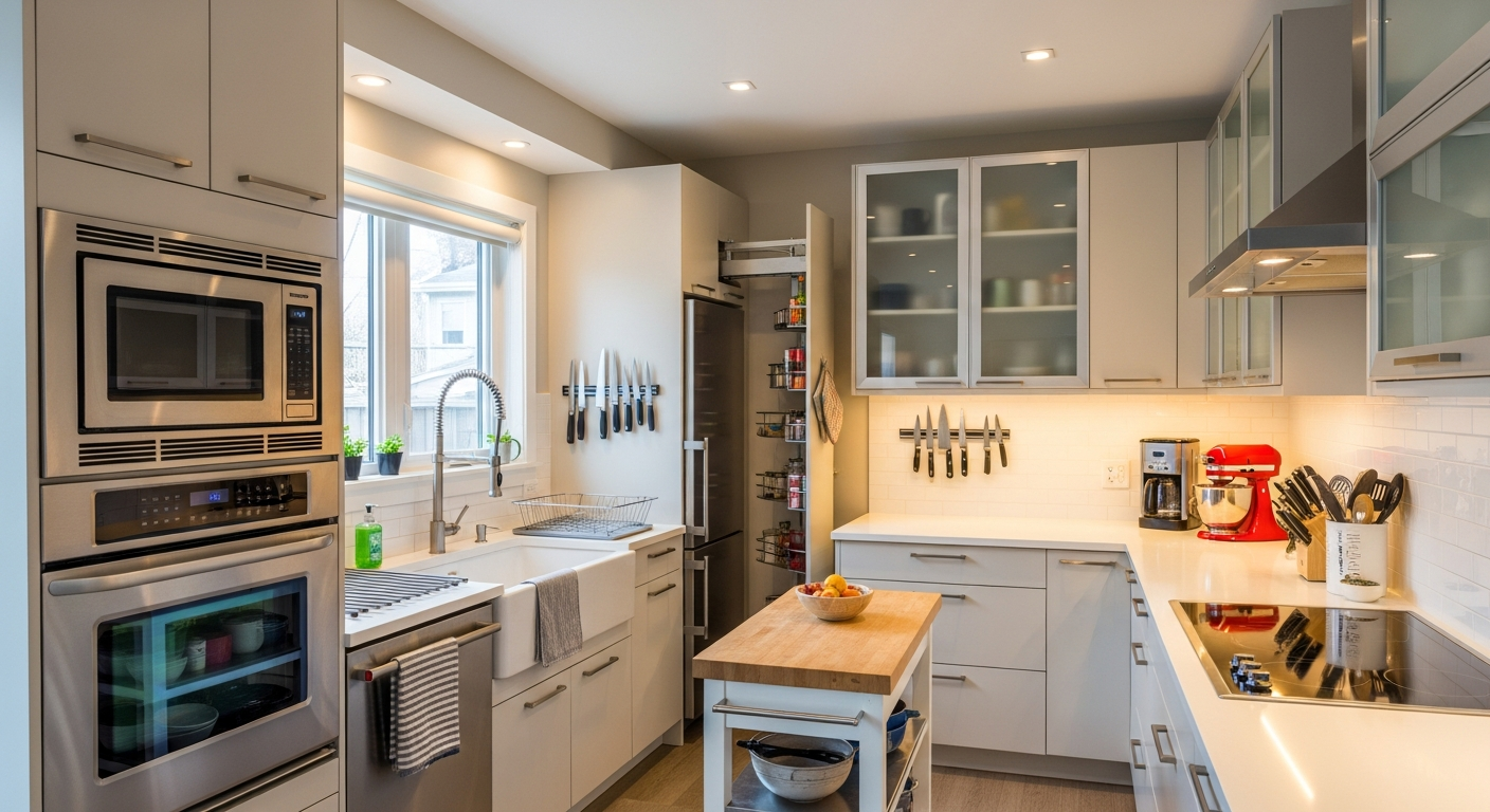 Mazo virtuves piederumu un rīku, piemēram, blenderu, tosteru un kafijas automātu, izvietojums arī ietekmē telpas lietderību. Ir ieteicams izvēlēties tādus modeļus, kas ir viegli uzglabājami vai kuriem ir vairākas funkcijas, lai samazinātu nepieciešamo priekšmetu skaitu. Kvalitatīvi kulinārijas piederumi, piemēram, naži, griešanas dēļi un cepšanas trauki, ir investīcija, kas ilgtermiņā atmaksājas, uzlabojot ēdiena sagatavošanas pieredzi un nodrošinot labākus rezultātus.